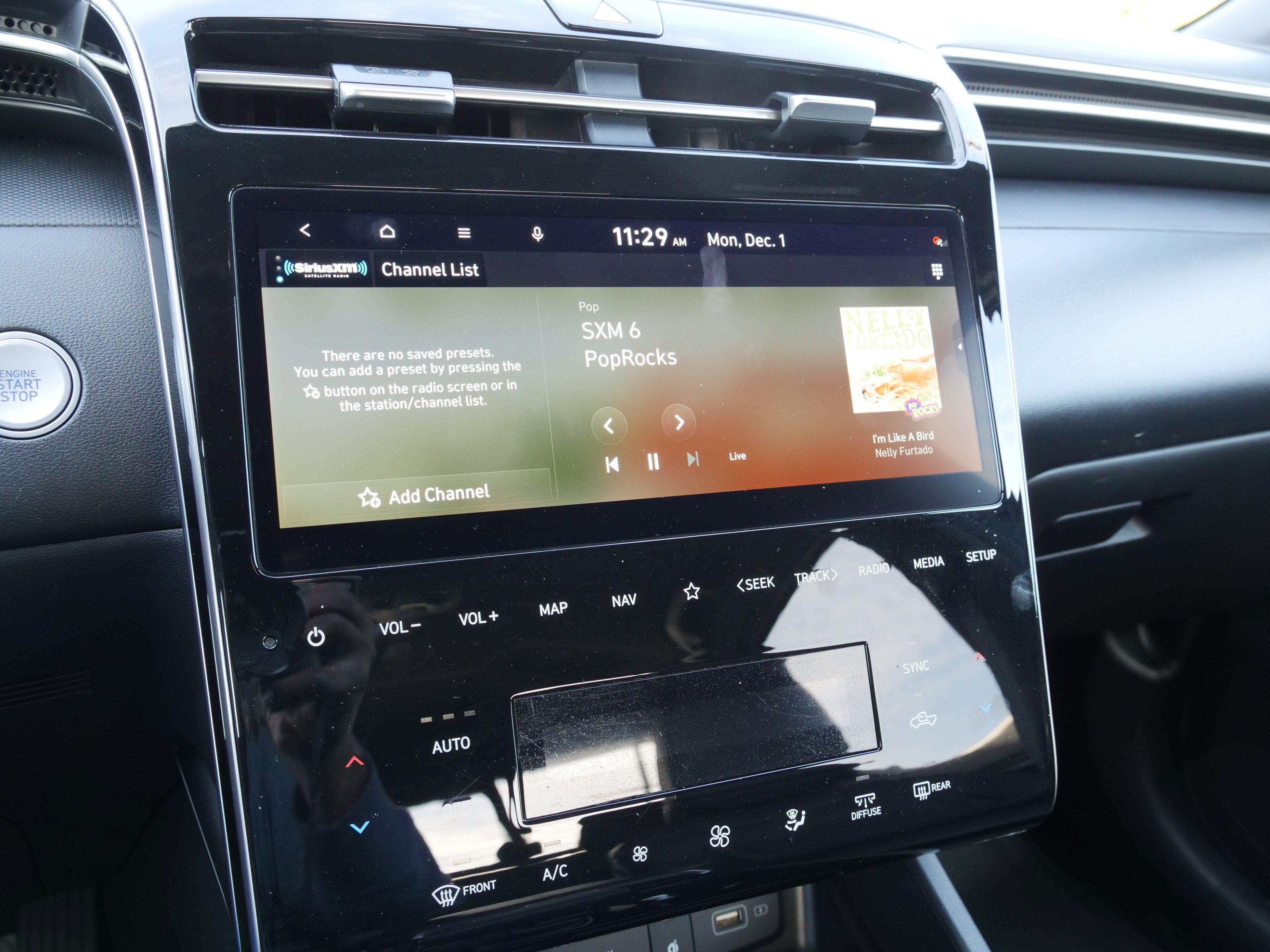 - Radio: AM/FM/HD Audio System -inc: 10.25" color touchscreen, onboard navigation and traffic flow including incident data via HD radio (HERE), map and multimedia software OTA update capability, dynamic voice recognition, 6 speakers, SiriusXM satellite radio w/3-month trial subscription, Bluelink + connected car system, Bluetooth® hands-free w/wireless audio streaming, wired Apple CarPlay and Android Auto and USB connectivity