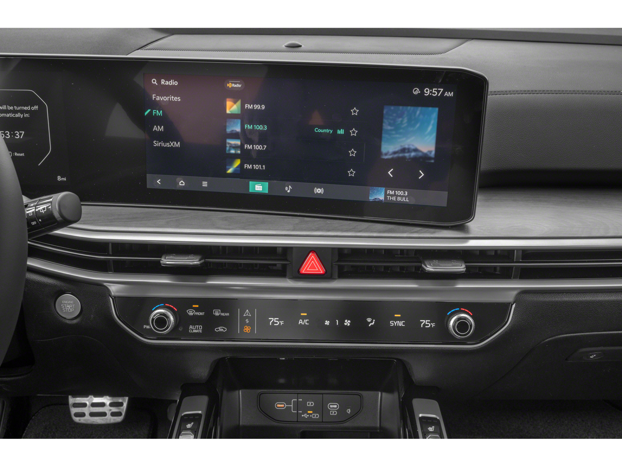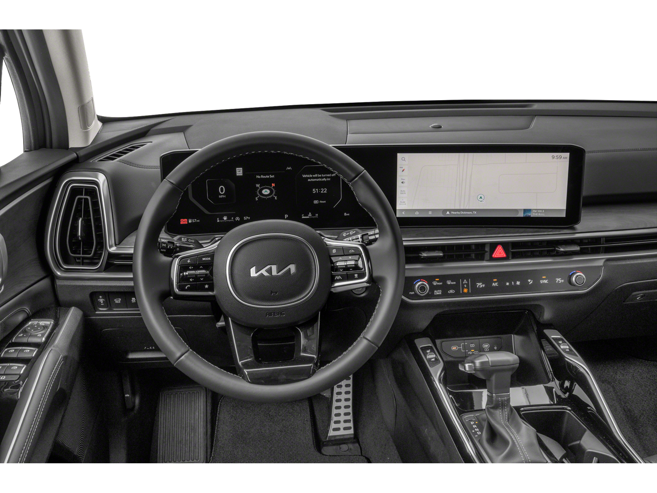 - Radio: AM/FM Standard Sound System -inc: 12.3" ccNC touchscreen, navigation, HD Radio, Bluetooth® w/audio remote control, wireless Android Auto and wireless Apple CarPlay, voice recognition, Sirius XM, modem Kia Connect, Wi-Fi hot spot, Over-The-Air Updates (OTA), 6 speakers and USB